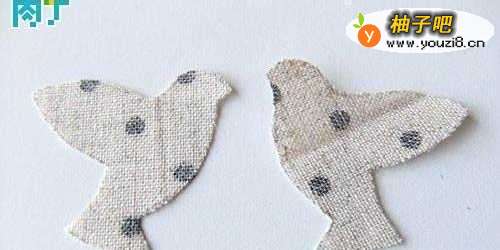 2第二步:用小鸟图形纸样在布料上画好,主要要不同方向的两片,然后裁剪下来。