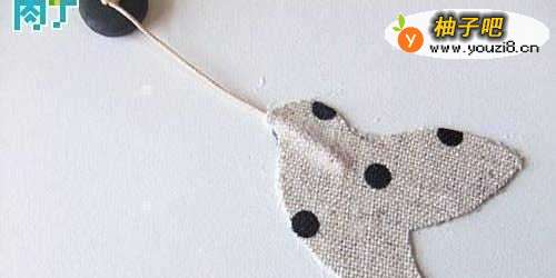 5第五步:将蜡绳夹在两片小鸟布料的中间然后对整齐并且粘好。