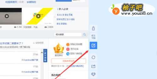 3我们往右侧看,可以看到一个笔写字的标志,如图所示,这就是写帖子的入口