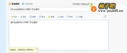 5我们还可以在要发的帖子里加入我们的话题,如图所示