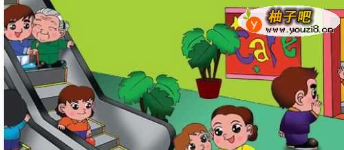 督促小朋友站在电梯上一定要站稳扶好,以面电梯急停,一不小心摔到。