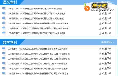3选择好了你要选择的地区后,进入,就会看到大量的不同学校的高考模拟题,这个时候,你可以选择你所要下载的科目以及时间。