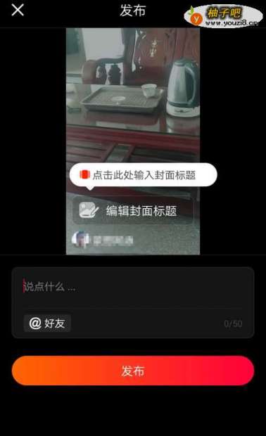 6编辑封面标题,设置内容并@好友,点击立即发布。
