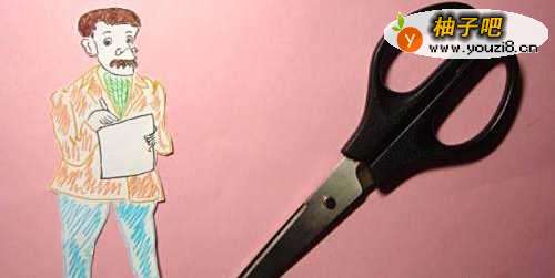 6然后,用剪刀把卡纸上的聪明的工程师图形,剪出来,注意要慢慢的剪,不要剪坏图形了,如下图所示。