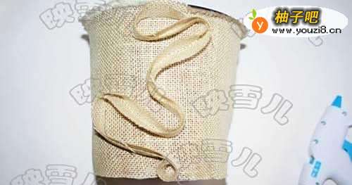 9在麻条边上可涂上些许热熔胶以防脱线。漂亮花盆完工。