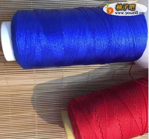 2中间对折 用3股蓝色线做绕线 最后的扣子用的1厘米的花朵 这里绕线两厘米 最后可以过扣子就行