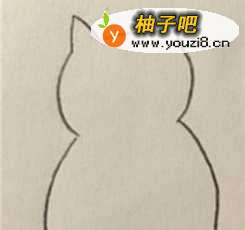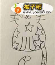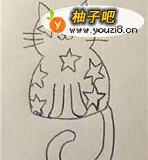 接着在五角星图案小猫身体下面勾出一条尾巴形状。