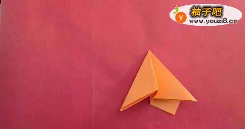 2一长边中间点为轴,平面分成五部分,从一边起四份对折,再对折。