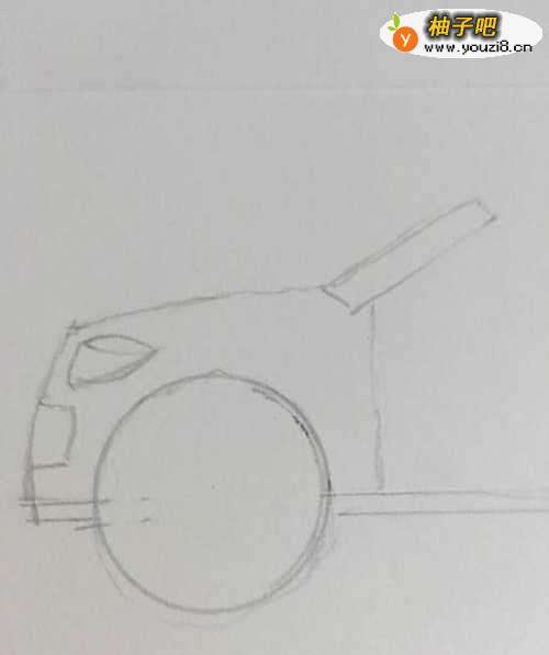 2第二步 在合适的位置 画上前轱辘