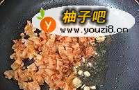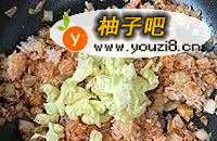 4另起锅倒入油烧热,放入辣白菜炒1分钟,最好放点辣白菜汤;