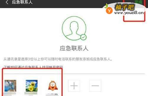 7回到应急联系人页面,可以看到刚刚勾选的应急联系人头像,最后点击右上角的【完成】,应急联系人就添加好了