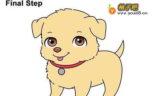 19最后一步:使用彩色铅笔,记号笔甚至蜡笔为您的卡通小狗着色!为拉布拉多或金毛猎犬的外观着色身体黄色或浅棕色。要在眼睛上产生渐变效果,请将顶部部分着色为深褐色,底部着色为浅棕色。将鼻子着色为棕色,但在顶部留有薄薄的条子以代表光泽。颜色舌头粉红色,领红色和标签灰色。不要忘记暂停视频以自己的速度绘制。