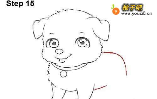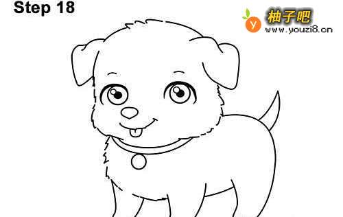 17第17步:在身体的右上方画出两条短小的线,它们来到小狗的尾巴。