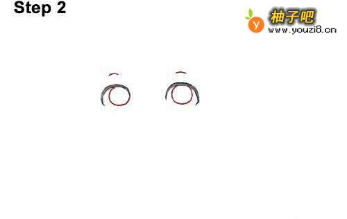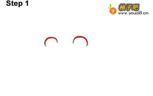 2第1步:为卡通小狗的眼睛绘制两条相邻的曲线。注意线的放置。不要将它们靠得太近。用粗线代表睫毛。曲线的形状应该类似于一个半圆。首先轻描淡写这些线条。当你的形状和位置正确时,将它们变暗。