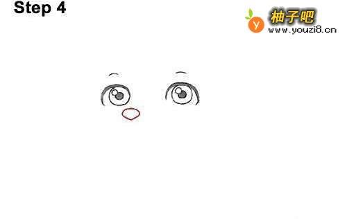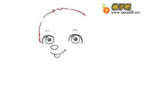 5第5步:在鼻子下面,为卡通小狗的嘴巴画一条长长的弯曲的水平线。