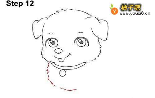 11第11步:在狗牌下方的领子上画一个小椭圆。