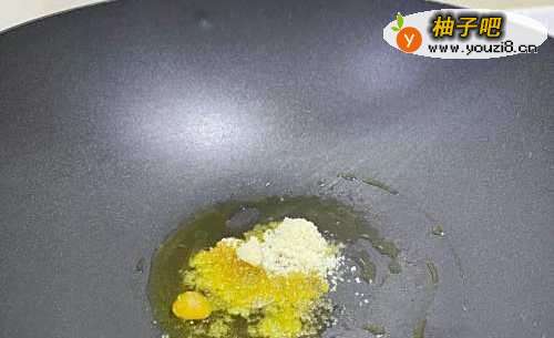 排骨氽烫去血水,取锅倒入油,倒入糖炒至糖融化