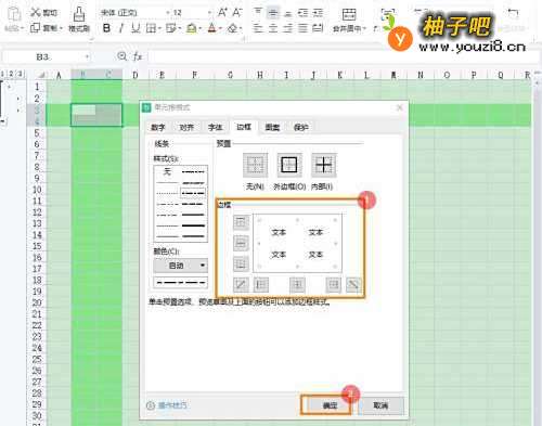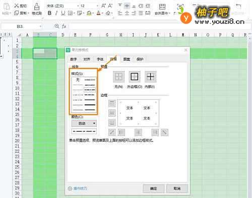 4选择样式后,点击【边框】,点击【确定】即可。