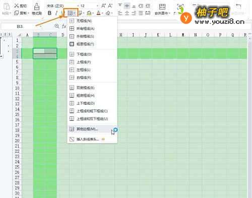 2点击功能区的【边框】→【其他边框】。