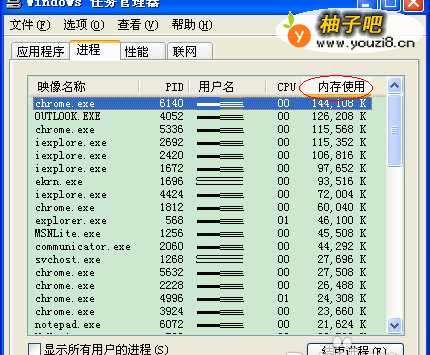 4而有的时候,我们用正常的“关机”命令后桌面依然显示,电脑不能被正常关机,这时我们再检查一下是否有进程干扰,尤其是要检查是否有不能正常关闭进程、停止响应的程序,检查其进程并强制性结束掉。这类进程一般“内存使用”较高: