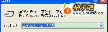 6如果一般的关机操作还无效,我们可以尝试用命令来进行关机操作。在DOS提示符下或“运行”对话框中输入“shutdown -s -t 30”即可: