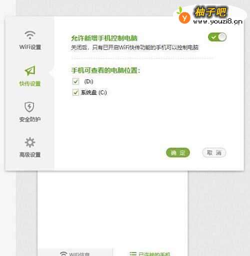 6同时还可以设置快传功能,方便电脑与手机之间文件的传输。