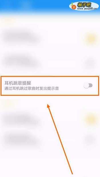 6当“耳机跳歌提醒”的按钮圆点的颜色为黄色的时候,问题就得到解决了。