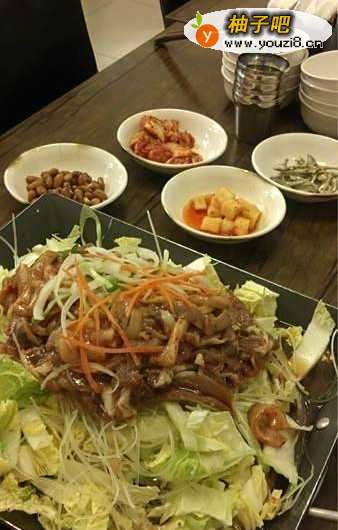 到首尔的第一餐,烤猪肉,其实就是猪肉,鱿鱼,白菜炖粉条。