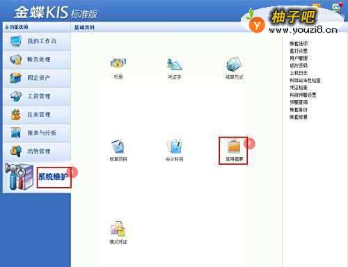 2在功能选项菜单,单击【系统维护】→【常用摘要】;