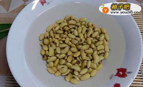 用量杯取黄豆一杯(约100g),细心捡去杂质和坏掉的豆子,用清水淘洗干净