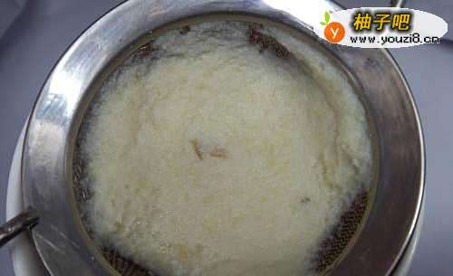 5一般20分钟以后豆浆就做好了,将做好的豆浆倒入准备好的容器里,过滤掉豆渣,小心不要烫到手