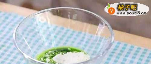 *注意:这里的菠菜糊一定要紧挨着蛋黄糊来挤,否则就无法连在一起了。
