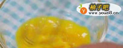 3蛋黄中加入剩余的7克面粉,用筷子搅拌均匀。