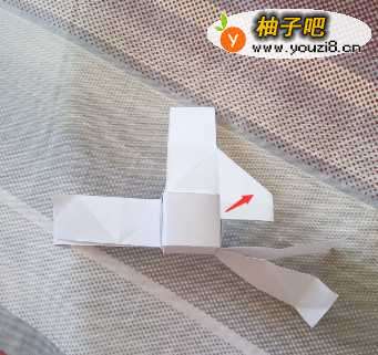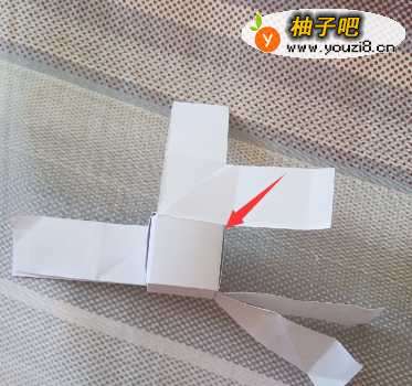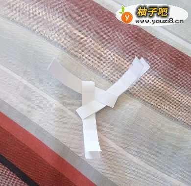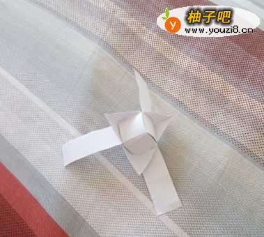 5将折好的纸条,按一头夹一头的方法插入好。如下图。再分别向外拉三个纸头,把中间部位拉紧。