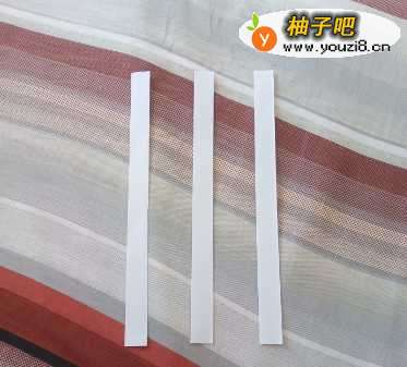 4全部折好后,展开。并按上边方法把三条纸都折一遍后展开,留下折痕。