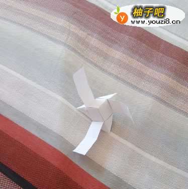 15全部折好后,手上吹转陀螺制作完成,可以捏住上下两个尖吹一下试试了。