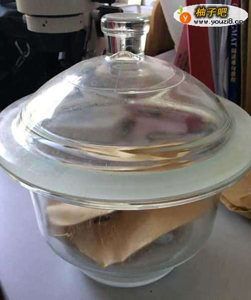 将昆虫放到还软缸里,几小时后,把回软好的昆虫从干燥皿里取出来。