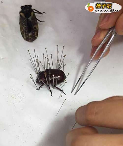 昆虫标本,一般多采用针插法制作标本,标本做好后可以长期保存。