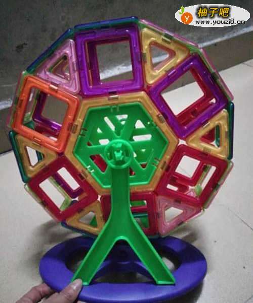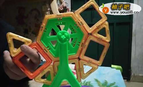 7第七步:左右两边用正方形磁铁片都连接完后,摩天轮就完成了,如下图所示。