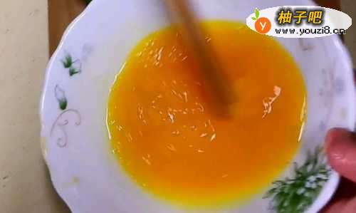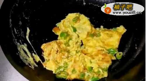 4锅中放油,油热后倒入蛋液,待慢慢凝固后,翻炒