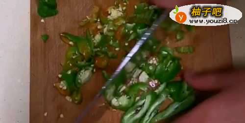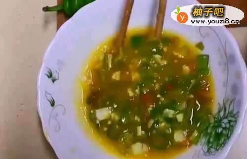 3青椒直接放入鸡蛋液中,缓慢搅拌均匀。