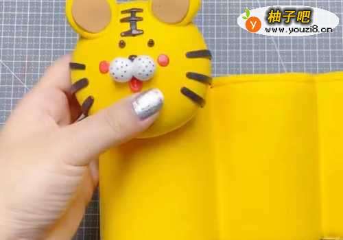 4相同颜色的黄色黏土,我们去制作出老虎的脸蛋加上可爱的耳朵眼睛鼻子。