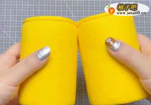 2第二个步骤,我们用黄色的黏土揉搓均匀,用工具压成片状用白乳胶固定粘贴好。