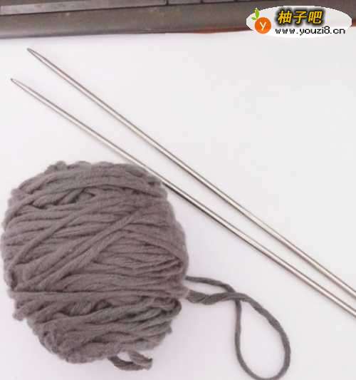 将准备好的毛线和棒针拿出来备用。