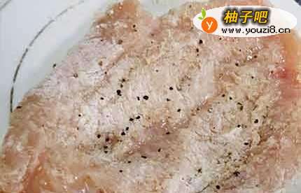 1.将鸡胸肉较厚的部份切开(勿切断),摊开成一片,放入密封盒中,倒入盐水后腌制2小时以上。2.取一平盘,倒入低筋面粉、白胡椒粉、黑胡椒粒及蒜粉混合均匀。3.取出腌好的鸡排(免冲水免擦干),放入平盘,让鸡排双面裹上一层薄粉。4.不沾平底锅倒入少许油热锅,放入鸡排后盖上锅盖,以小火煎约4~5分钟。5.将鸡排翻面,续煎3分钟左右即可。