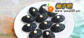 4粳米中加入糯米200克淘洗干净,晾干,磨成细粉,过筛后,加入适量开水拌匀,晾凉,揉成面团。另将剩余的糯米淘洗干净,倒入冷水浸泡10分钟左右,捞起沥干,用石臼捣成米粉,掺入面团中,拌匀揉透搓成条,摘成每个重35克的面剂100个,按成面皮,包入馅料,做成圆形生坯。将生坯蘸水,放入乌米中滚粘上乌米,上笼蒸熟取出即成。