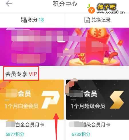 4然后,即可进入兑换界面,如图初始界面即可看到兑换会员项目,但是这是针对已经是会员的用户,非会员无法兑换,需要上滑界面,进行拖动。