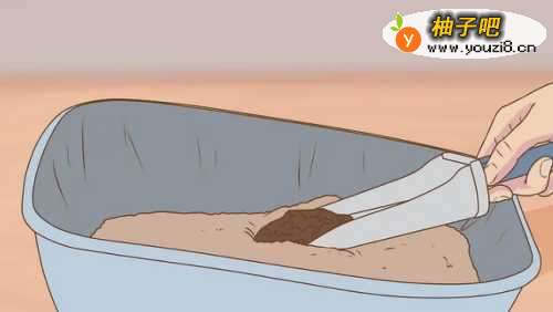 7保持砂盆干净。每天都用捡便器清理里面的排泄物。这会减少尿液和粪便的气味。每个月换一次砂。