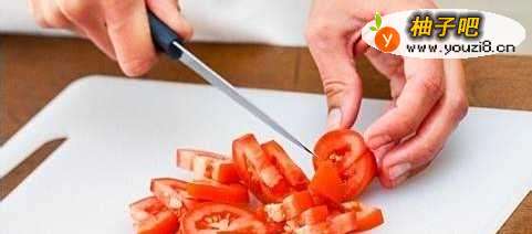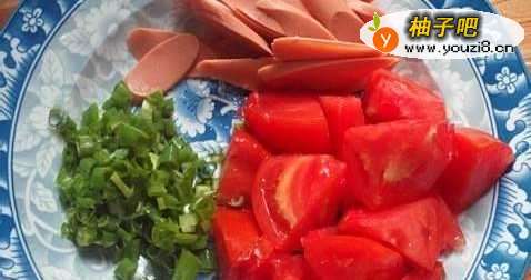 3然后把所有准备好的食材,西红柿、火腿小油菜等 洗干净,切好。