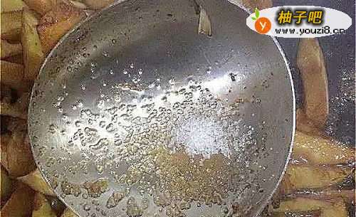 4放入糖煸炒一会,加入50毫升热水煮开,转小火焖煮五分钟